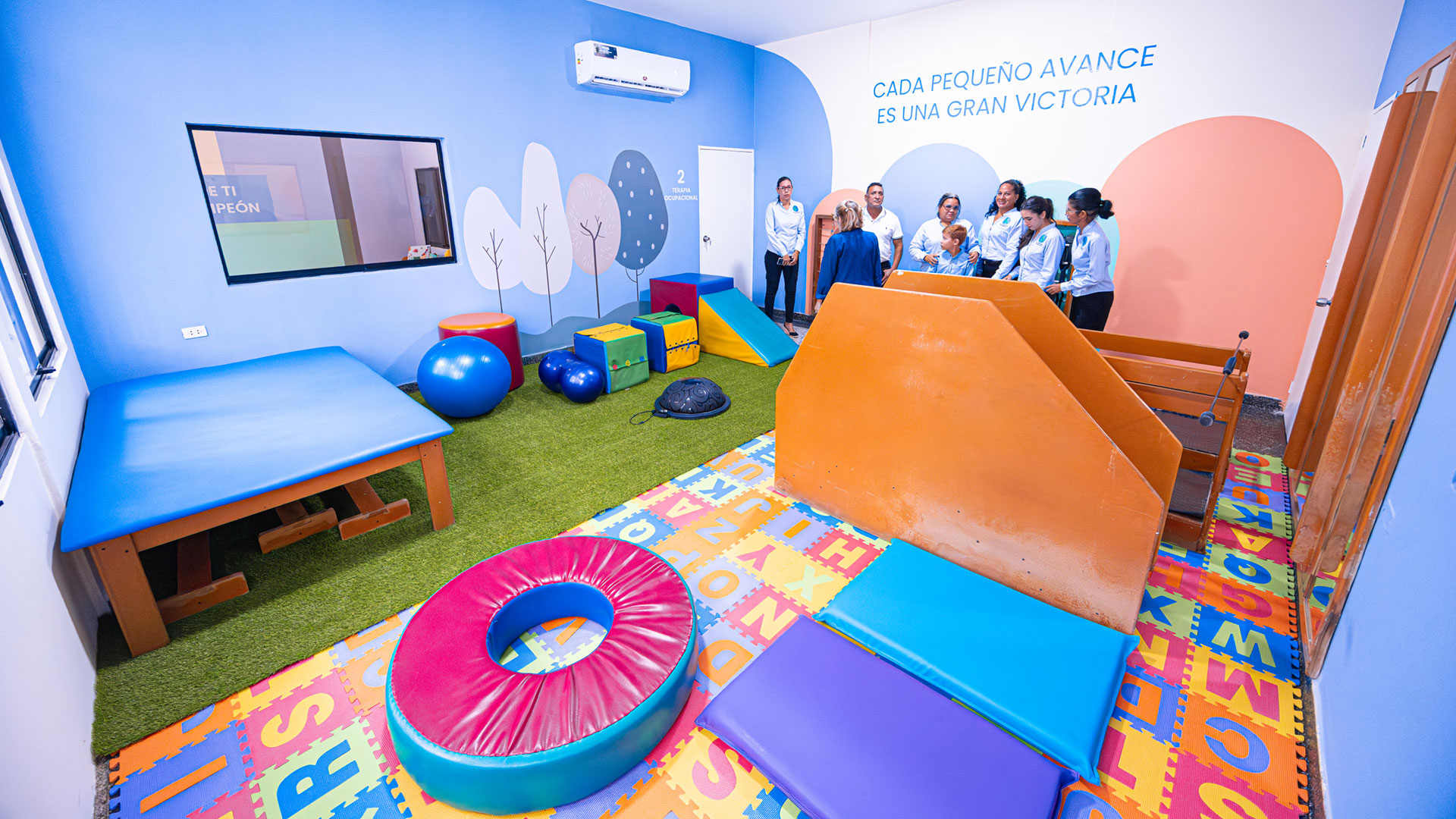 La contribución de la Fundación CLX incluyó una dotación de equipamiento médico especializado y actualización del gimnasio de mecanoterapia con muebles acolchados, juguetes sensoriales y elementos diseñados para estimular a los niños a través de juegos y actividades divertidas durante su rehabilitación.